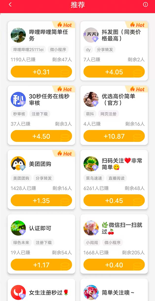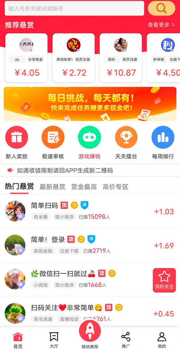 2、海量任务10万+,新人奖励多,1元秒提现。